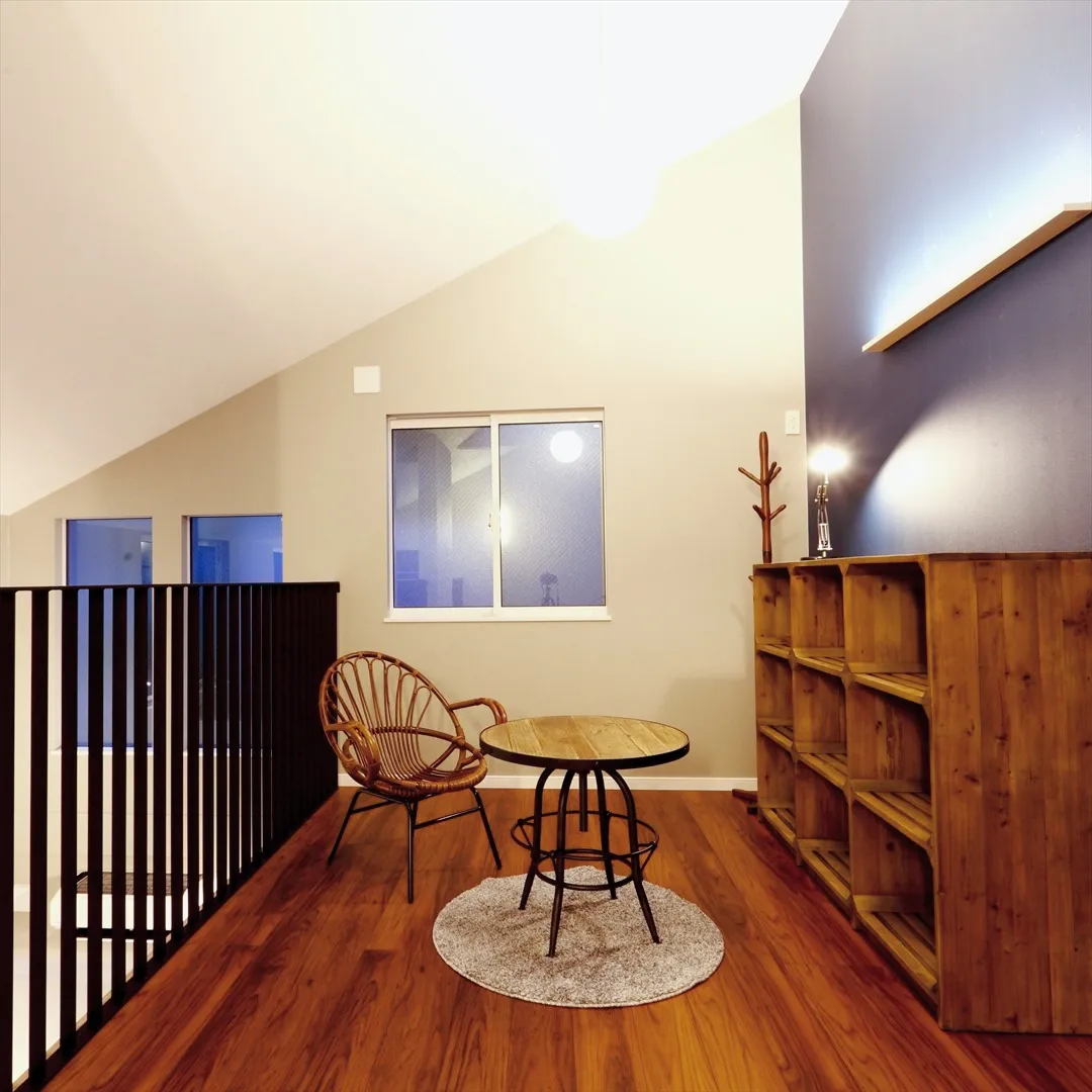 2階にあるセカンドリビングから1階のリビングを見下ろすと、そこには家族の温かな空気が漂っています。ここは私たちの癒しの空間で、日常の忙しさを忘れてゆっくりできる場所🌿。